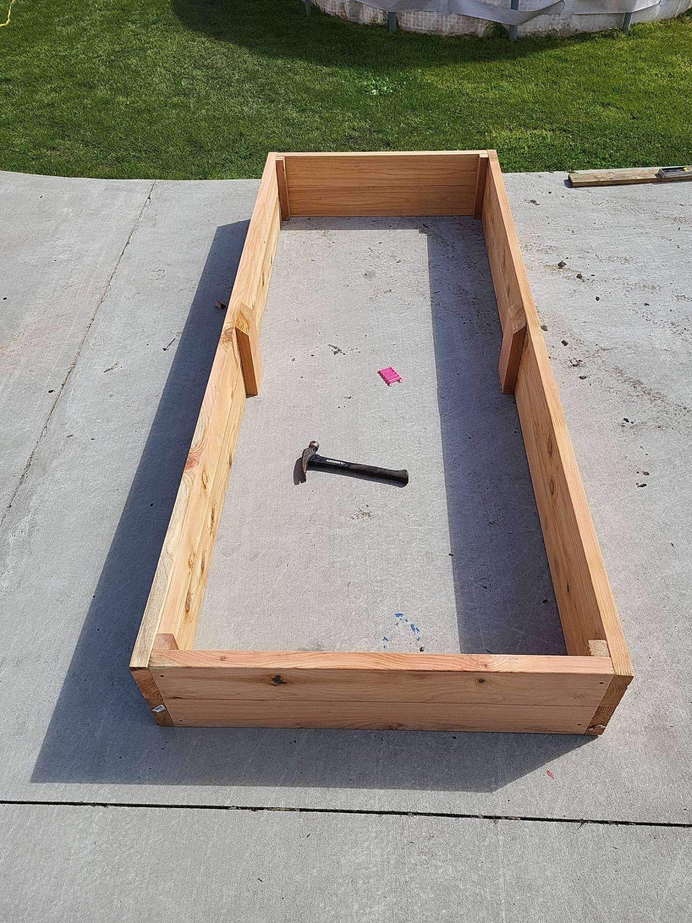 A simple design for a stable, sturdy garden bed. You can dress it up a bit by adding a mitred border around the top or making it higher. You can even attach a hinged lid or hoop frame to keep pests and the cold out. The possibilities are endless!