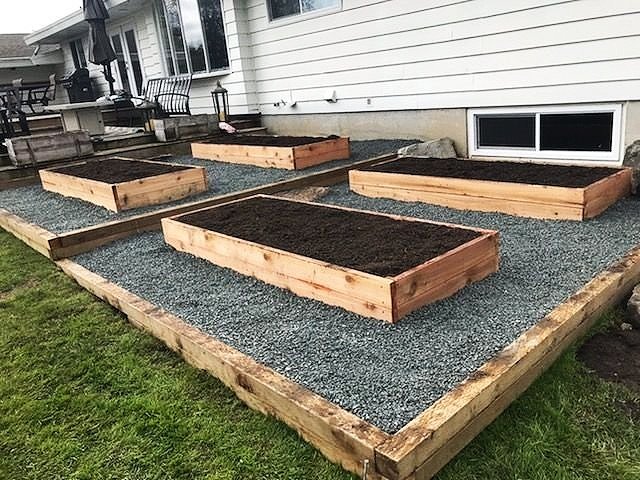 After: We filled the sections with gravel and built 1ft high cedar beds on top, with walking space in between. Ready to plant!